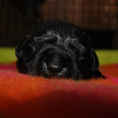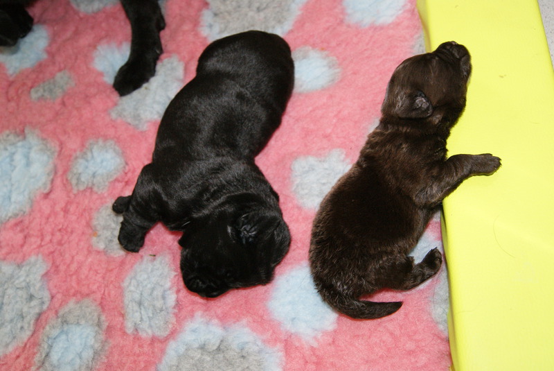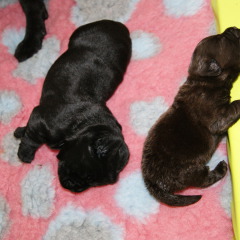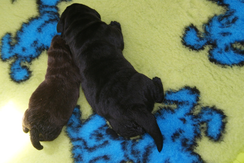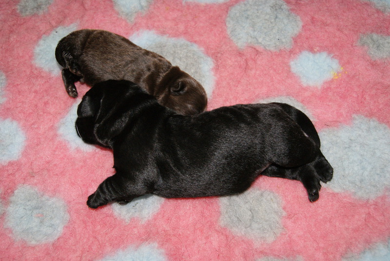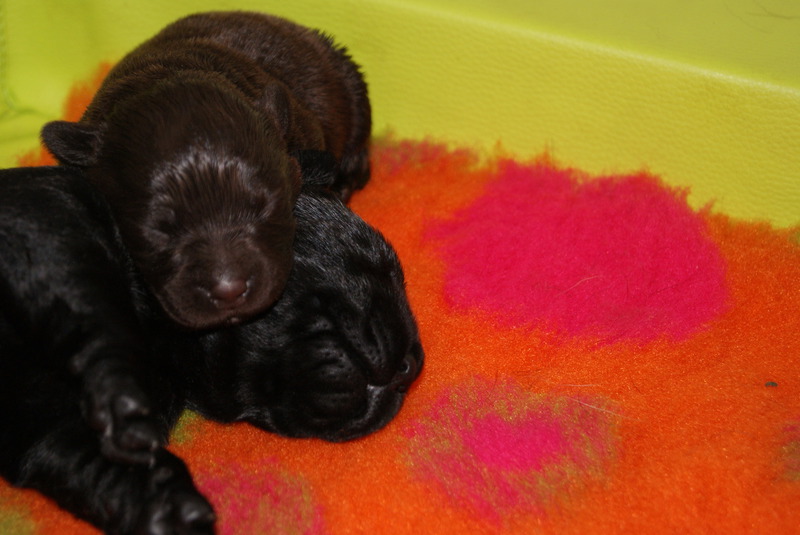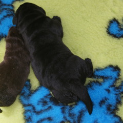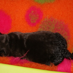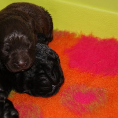 Um den 17.6.2019 schwarze und braune Welpen Aurica by Parma x Salt Creek Code of Honor